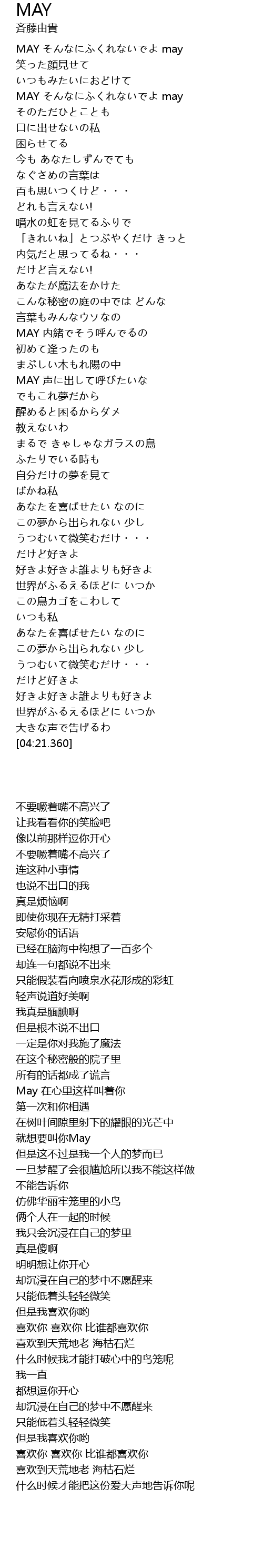 | [02:20.850] | 就想要叫你May |