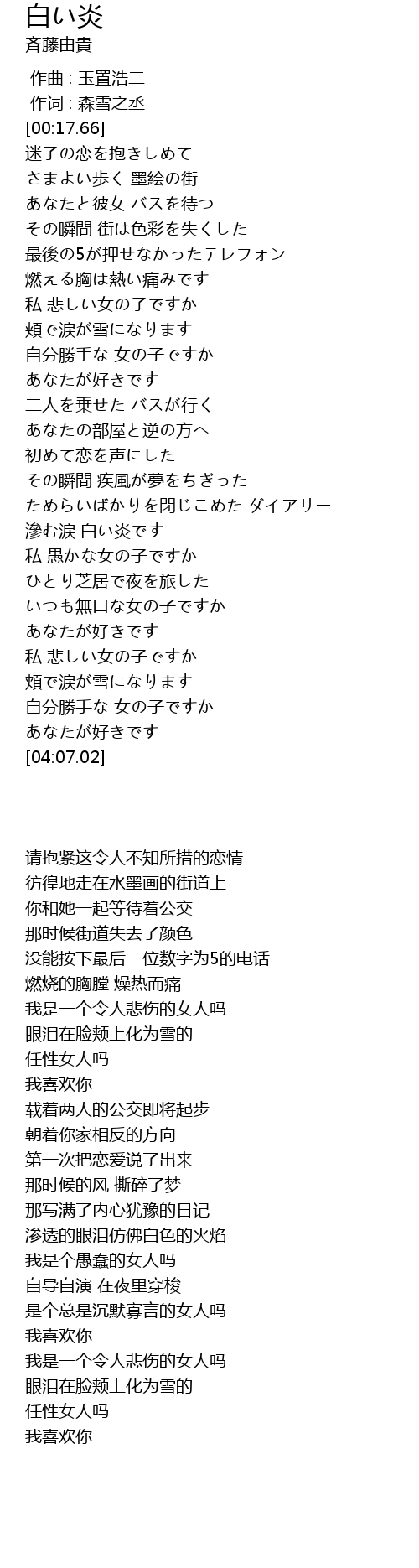 | [02:41.80] | 滲む涙 白い炎です |