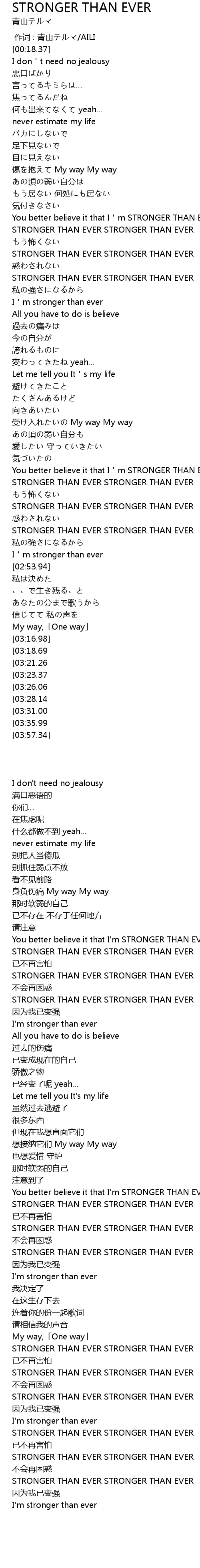 | [03:42.43][03:23.37] | STRONGER THAN EVER STRONGER THAN EVER |