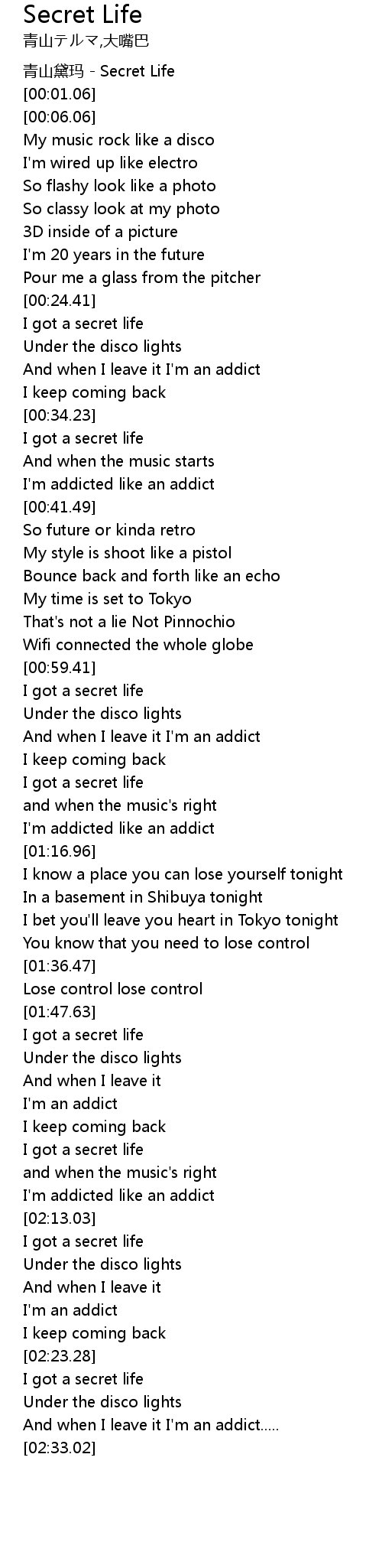| [02:23.69] | I got a secret life |