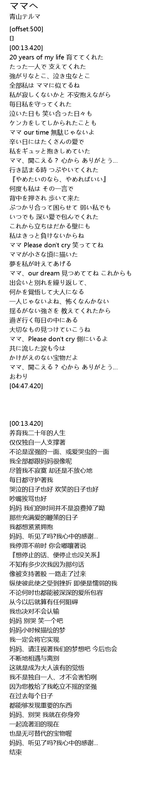 | [02:44.630] | ママ Please don't cry 笑っててね |