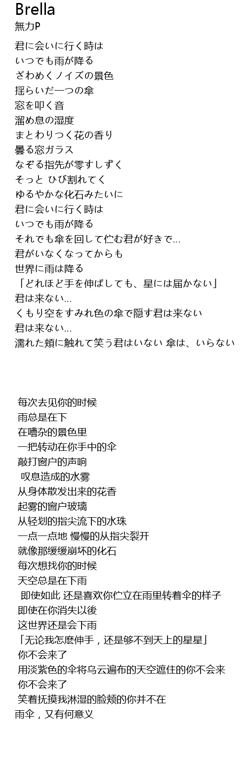 笑着抚摸我淋湿的脸颊的你并不在 雨伞,又有何意义 |