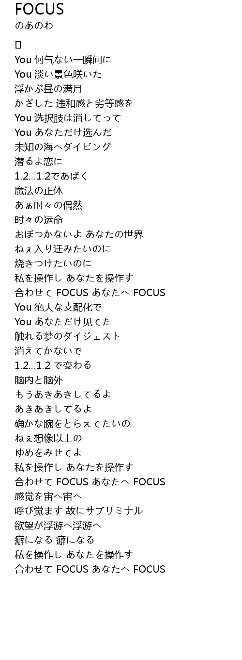 合わせて FOCUS あなたへ FOCUS |