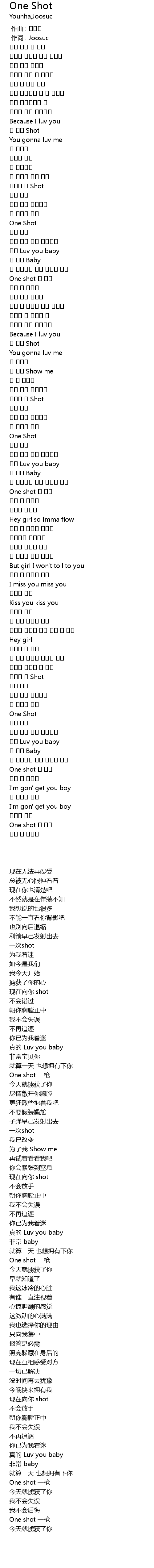 | [01:26.210] | One shot 一枪 |