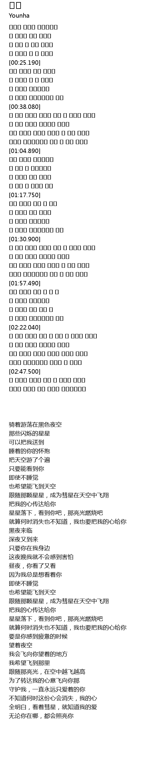 | [02:48.810] | 다 알거야 혜성을 보면 내 사랑을 알거야 |