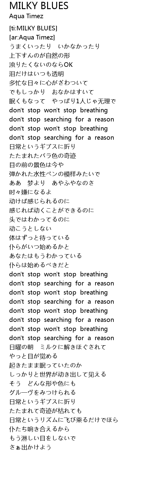 | [00:45.00] | don' t stop won' t stop breathing |