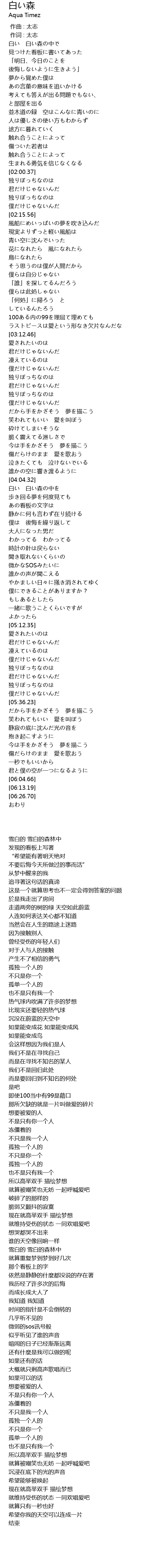 | [01:12.94] | 白い 白い森の中で |