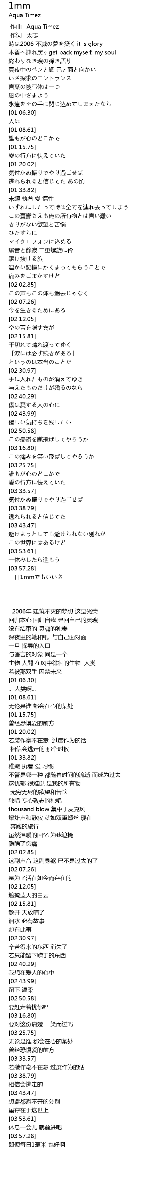 | [00:00.00] | zuò qǔ : Aqua Timez |