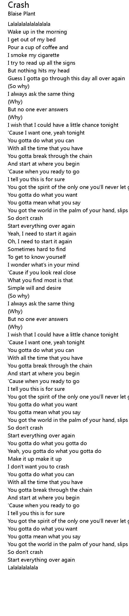 I don't want you to crash |