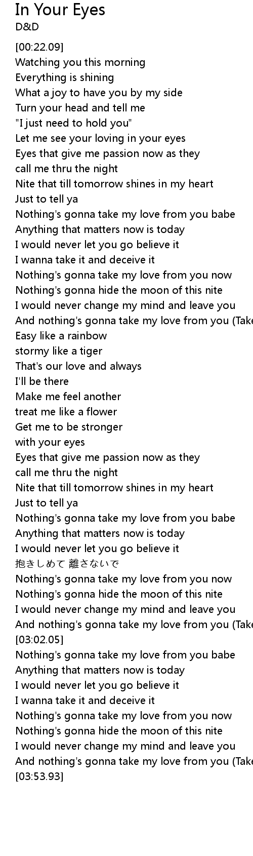 | [03:44.48] | And nothing's gonna take my love from you (Take my love) |