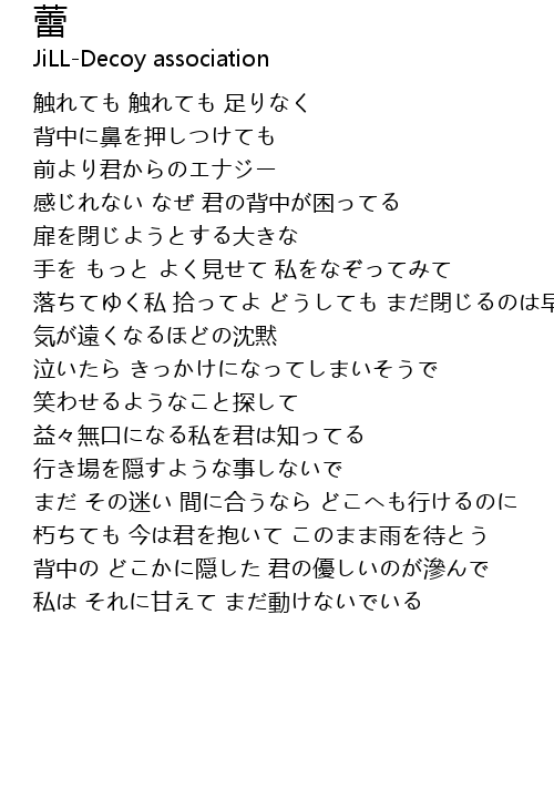 | 朽ちても 今は君を抱いて このまま雨を待とう | |