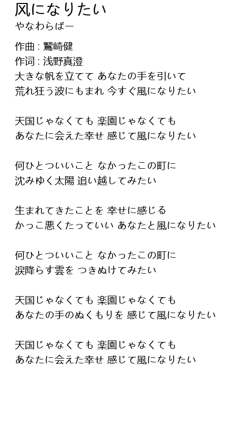 | あなたの手のぬくもりを 感じて風になりたい | |
