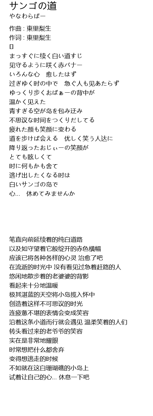 | 作词 : 東里梨生 | |