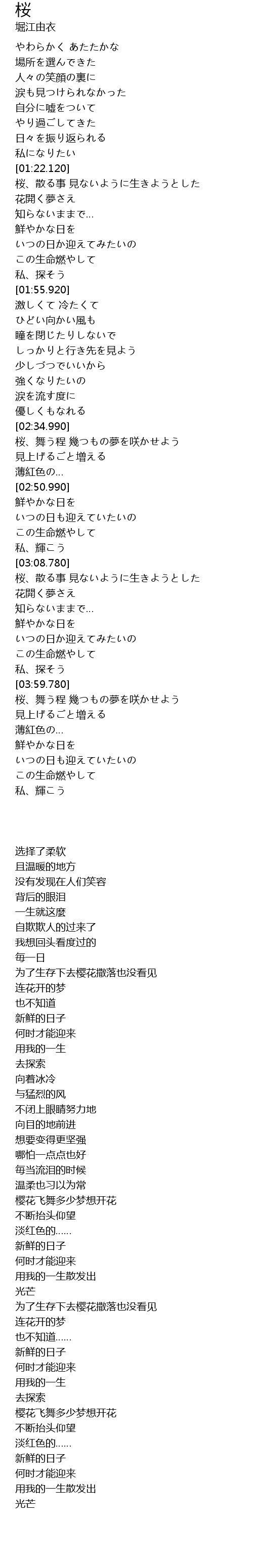 | [01:22.200] | 桜、散る事 見ないように生きようとした |
