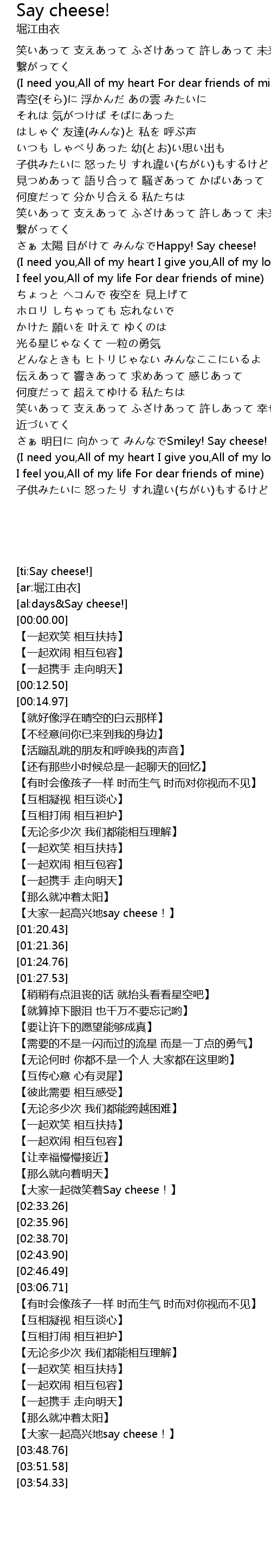 | [01:16.99] | 【大家一起高兴地say cheese!】 |