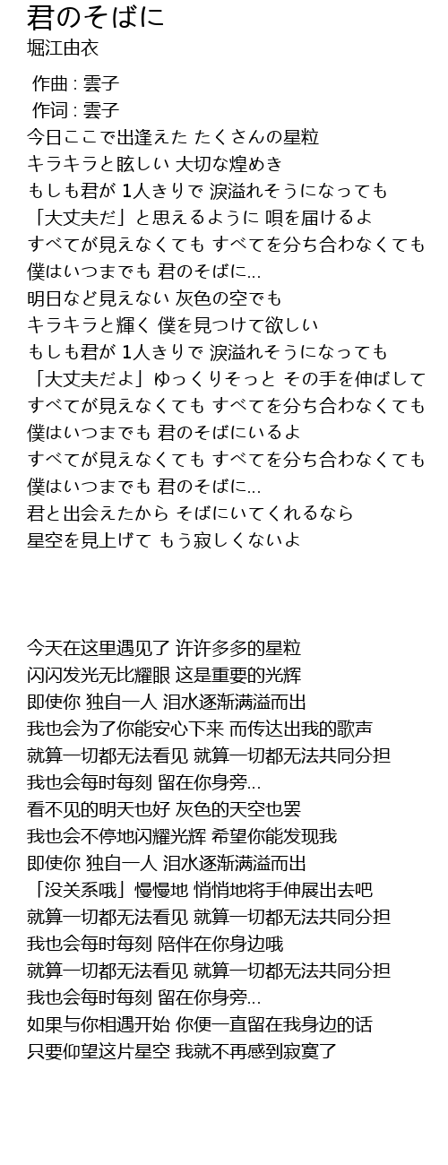 我也会为了你能安心下来 而传达出我的歌声 |