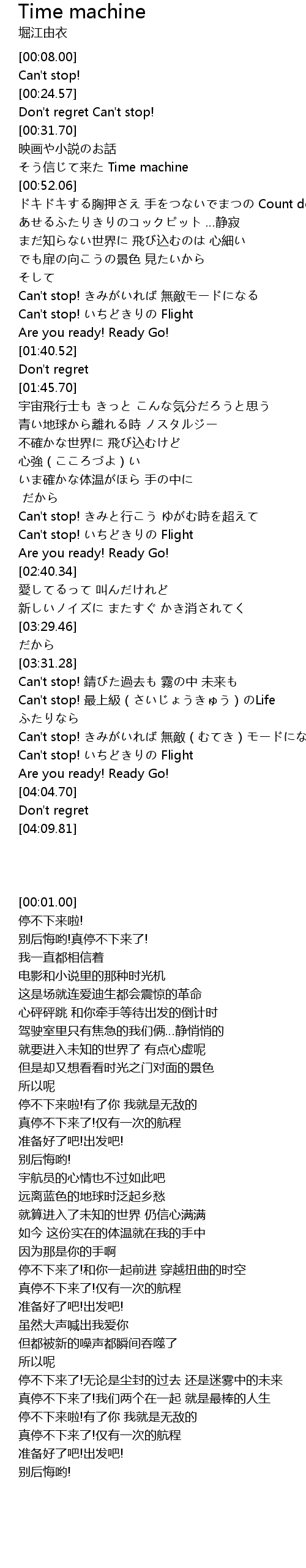 | [02:23.98] | Can't stop! きみと行こう ゆがむ時を超えて |