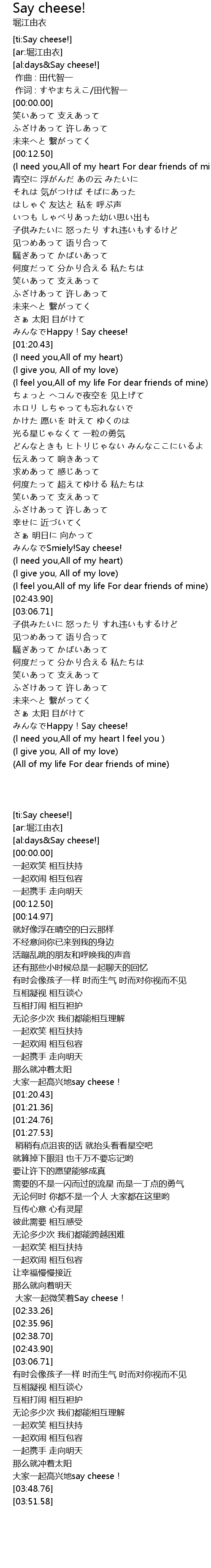 | [03:44.46] | みんなでHappy!Say cheese! |