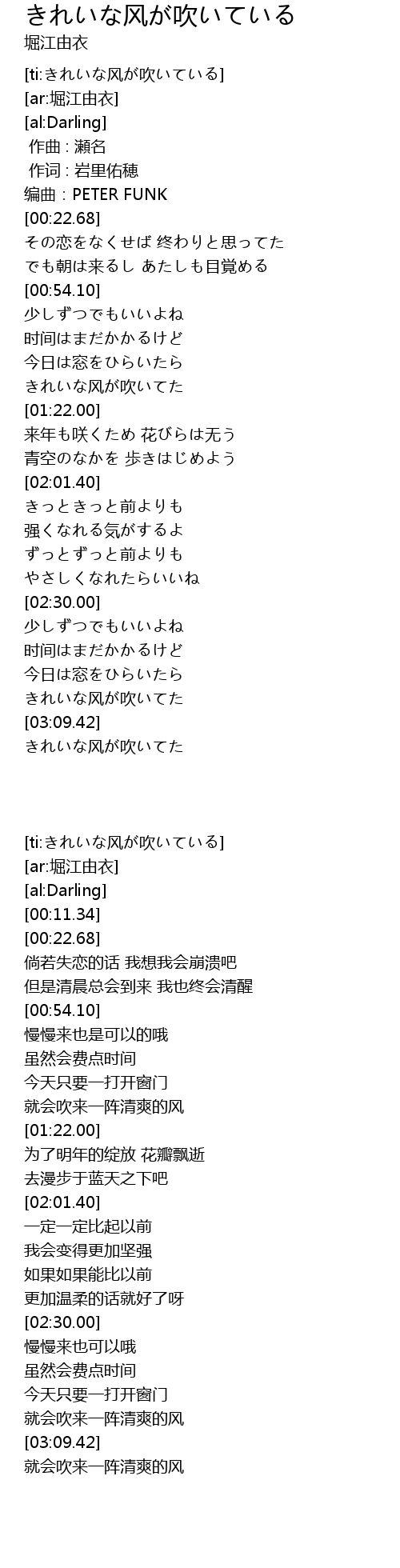 [ti:きれいな风が吹いている] |