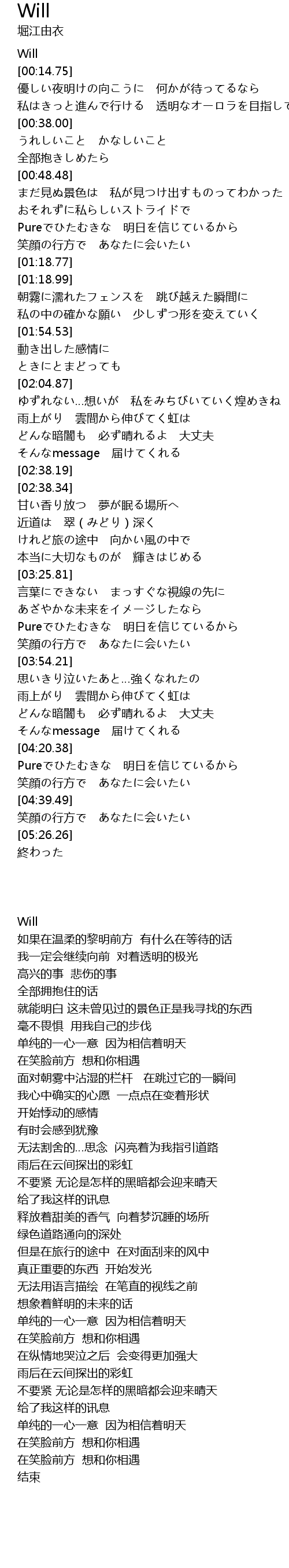 | [03:38.57] | Pureでひたむきな 明日を信じているから |
