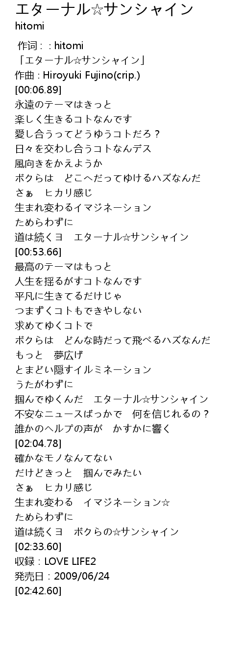 | [00:02.89] | 「エターナル☆サンシャイン」 |