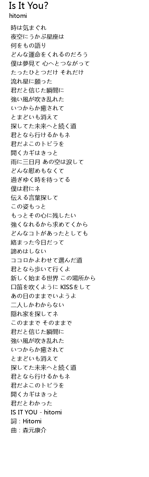 | [03:17.376] | 口笛を吹くように KISSをして |