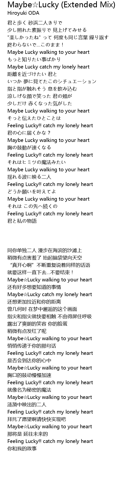 | [04:02.47] | Feeling Lucky!! catch my lonely heart |