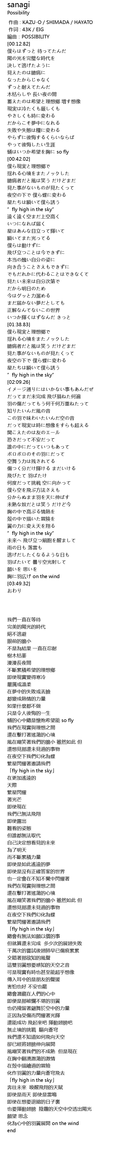 | [00:39.55] | 蛹的心中總是懷抱希望能 so fly |