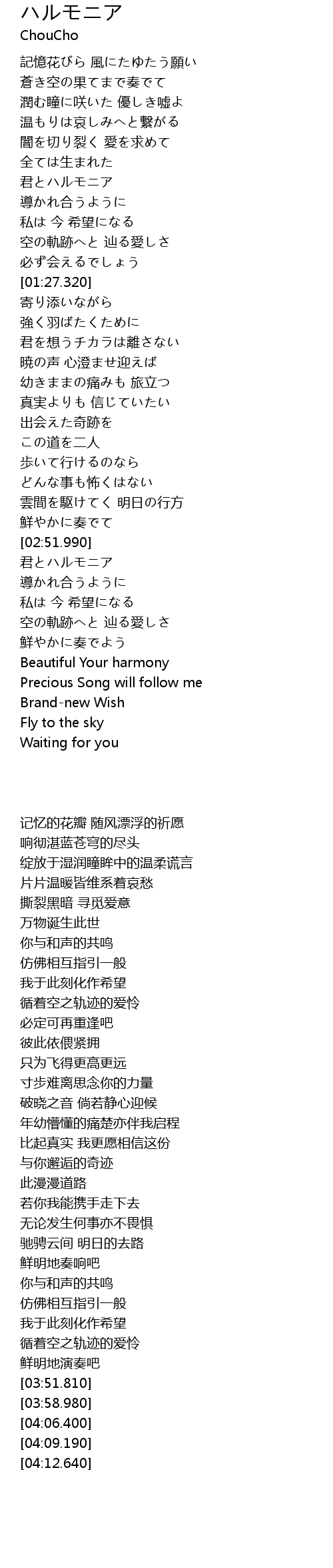 | [03:51.810] | Beautiful Your harmony |