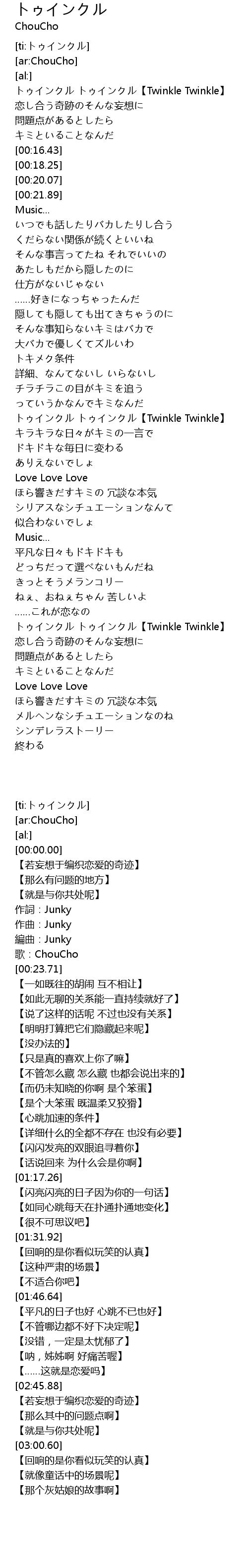 | [00:00.00] | トゥインクル トゥインクル【Twinkle Twinkle】 |