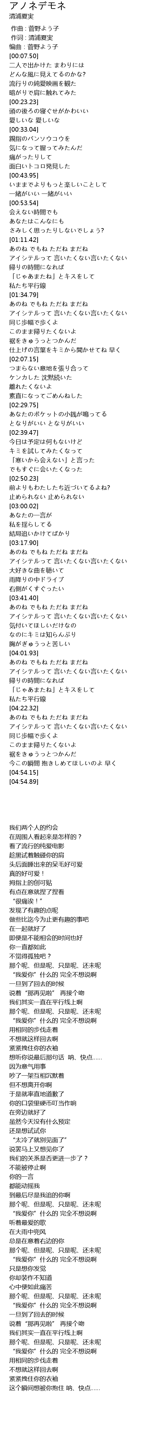 | [00:00.683] | 作词 : 清浦夏実 |