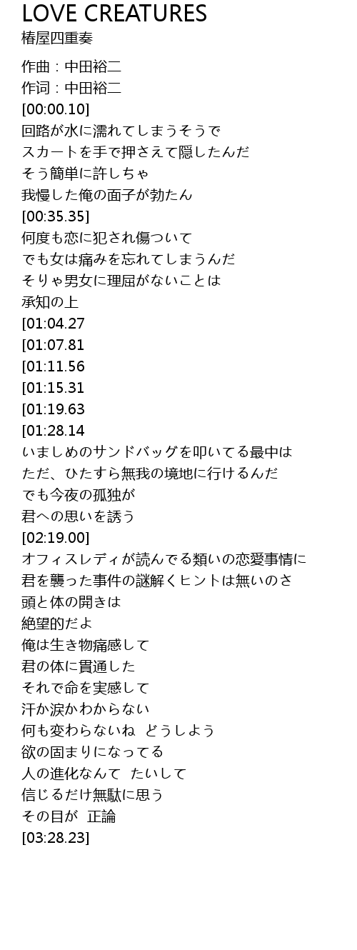 | [01:54.59][01:04.27] | 俺は生き物痛感して |