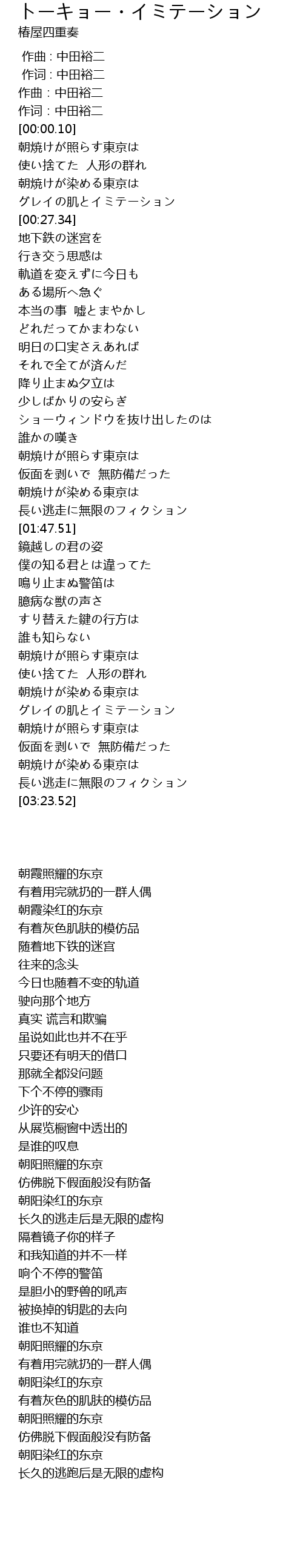 | [03:00.47] | 有着灰色的肌肤的模仿品 |
