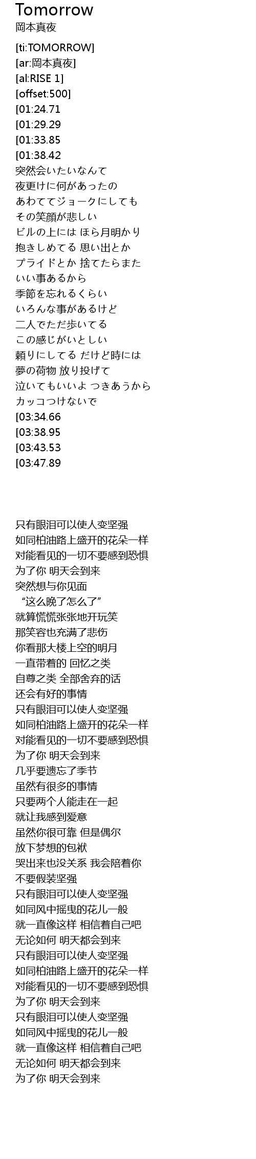| [02:53.47][03:47.89] | míng rì lái shí |