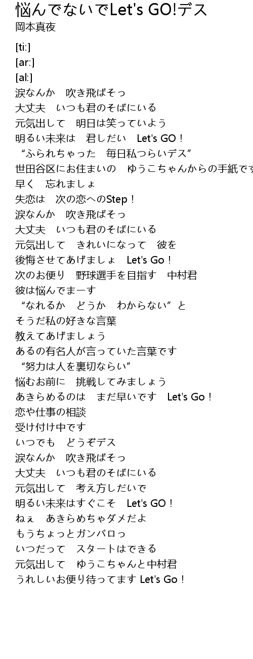 | [04:06.16] | 明るい未来はすぐこそ Let's GO! |