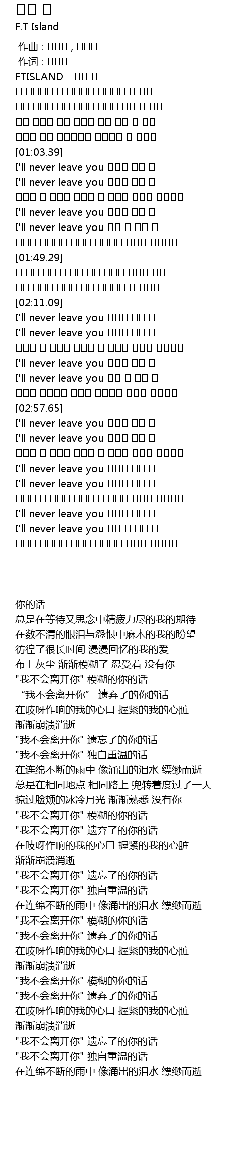| [02:17.68] | "我不会离开你" 遗弃了的你的话 |