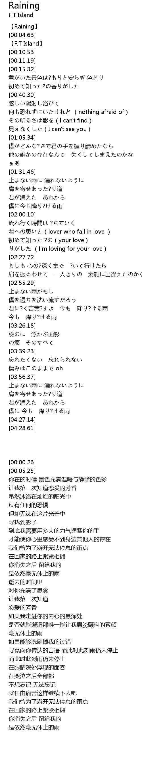 | [00:00.26] | Raining |