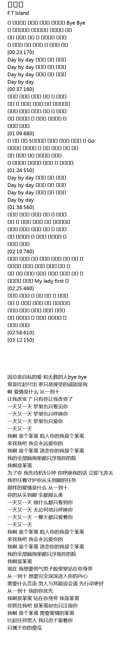 | [01:32.580] | Day by day 온종일 너만 사랑해 |