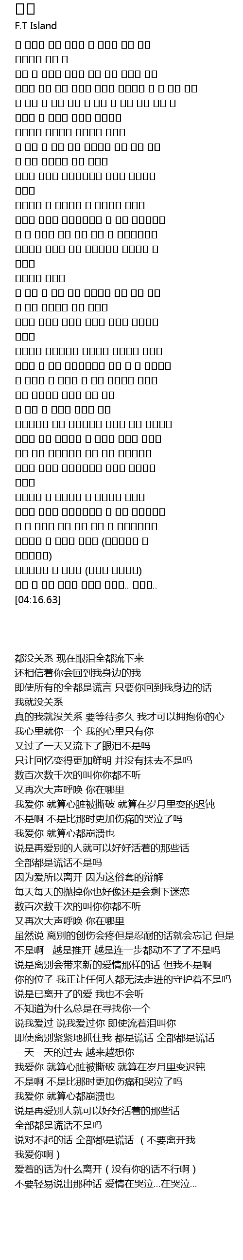 | [03:54.00] | 说对不起的话 全部都是谎话 (不要离开我 我爱你啊) |