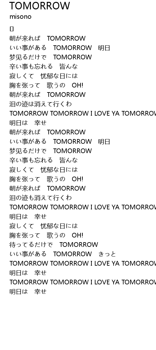 | TOMORROW TOMORROW I LOVE YA TOMORROW | |