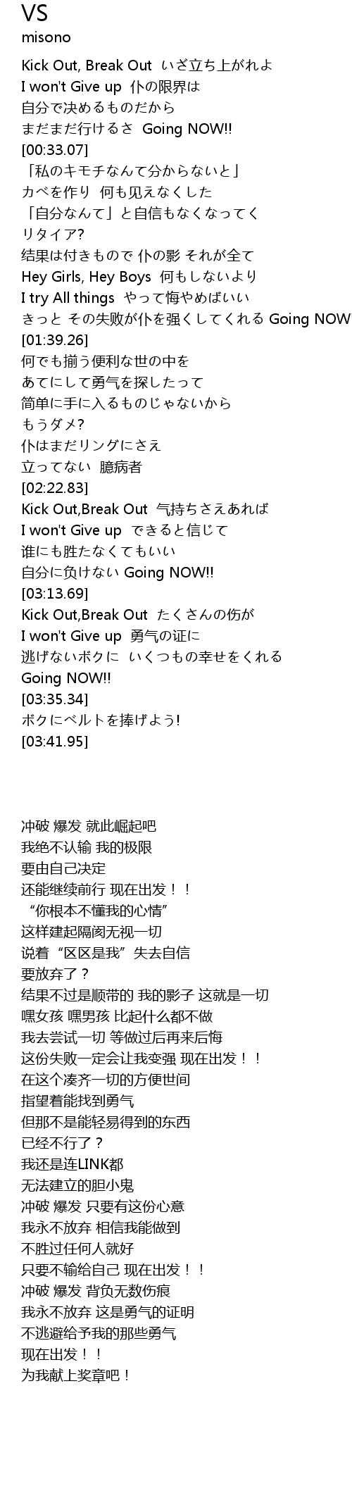 | [03:14.36] | Kick Out,Break Out たくさんの伤が |