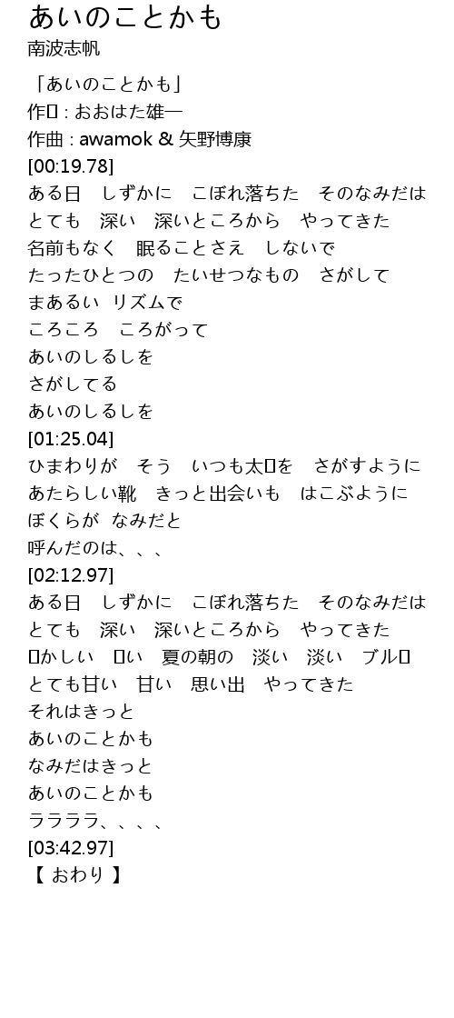 | [00:01.78] | 「あいのことかも」 |