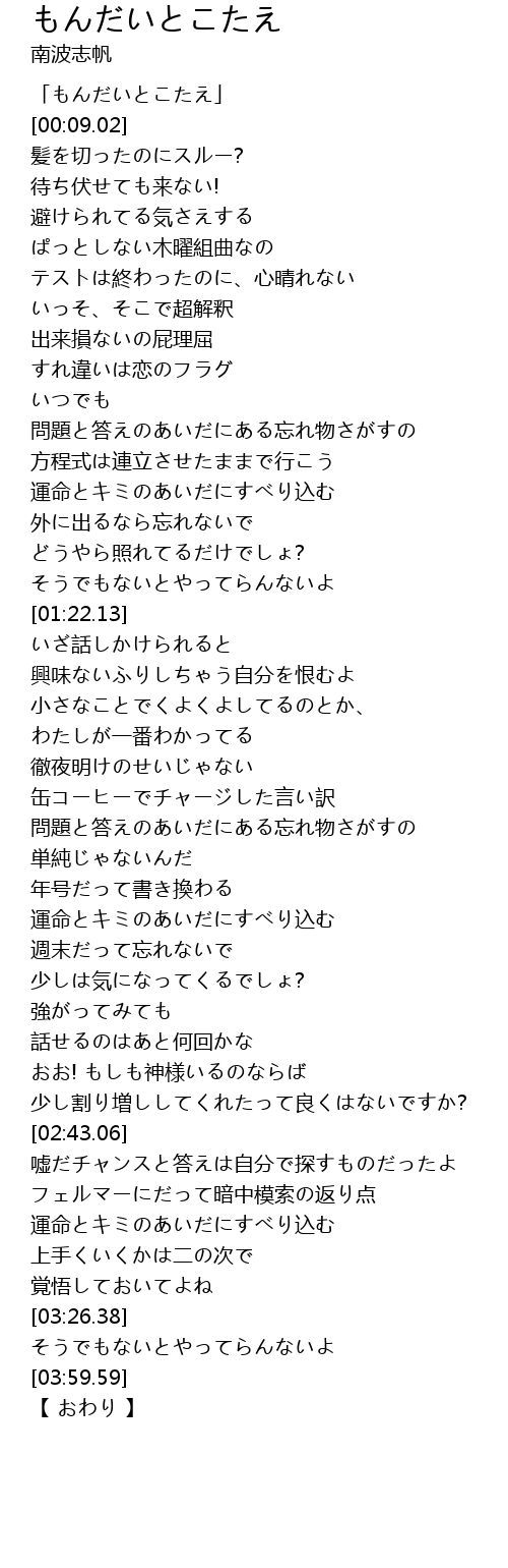 | [00:52.21] | 問題と答えのあいだにある忘れ物さがすの |