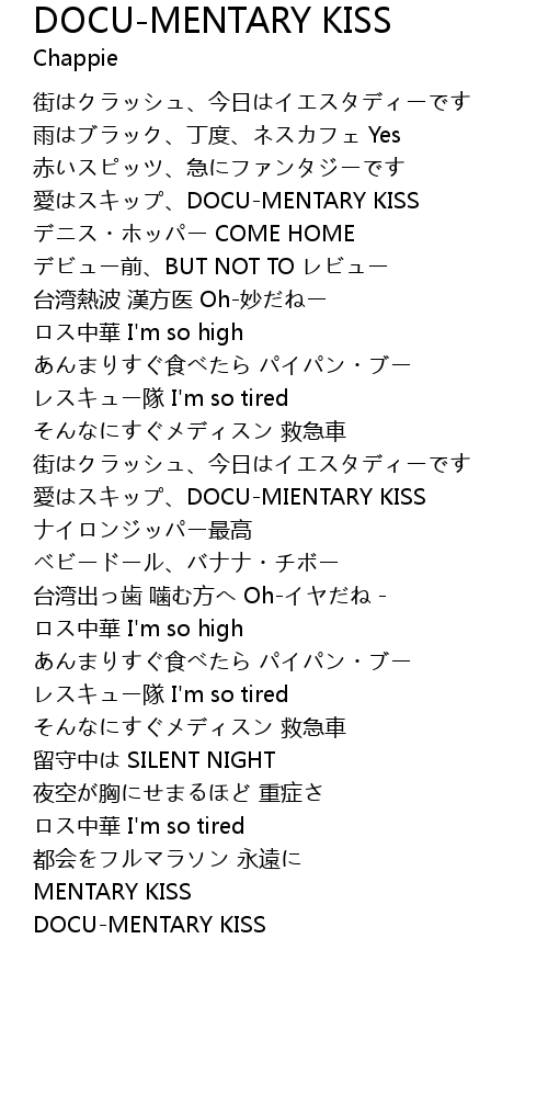 | [00:54.54] | 愛はスキップ、DOCU-MENTARY KISS |
