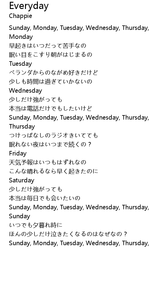 | Sunday, Monday, Tuesday, Wednesday, Thursday, Friday, Saturday, Everyday | |