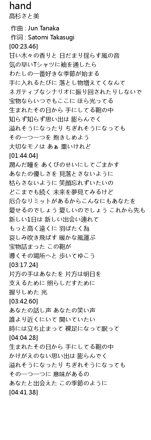 | [04:33.41] | あなたと出会えた この季節のように |