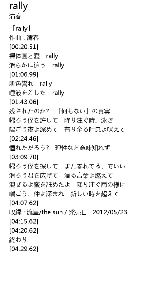 | [00:45.51] | luǒ tǐ huà ài rally |