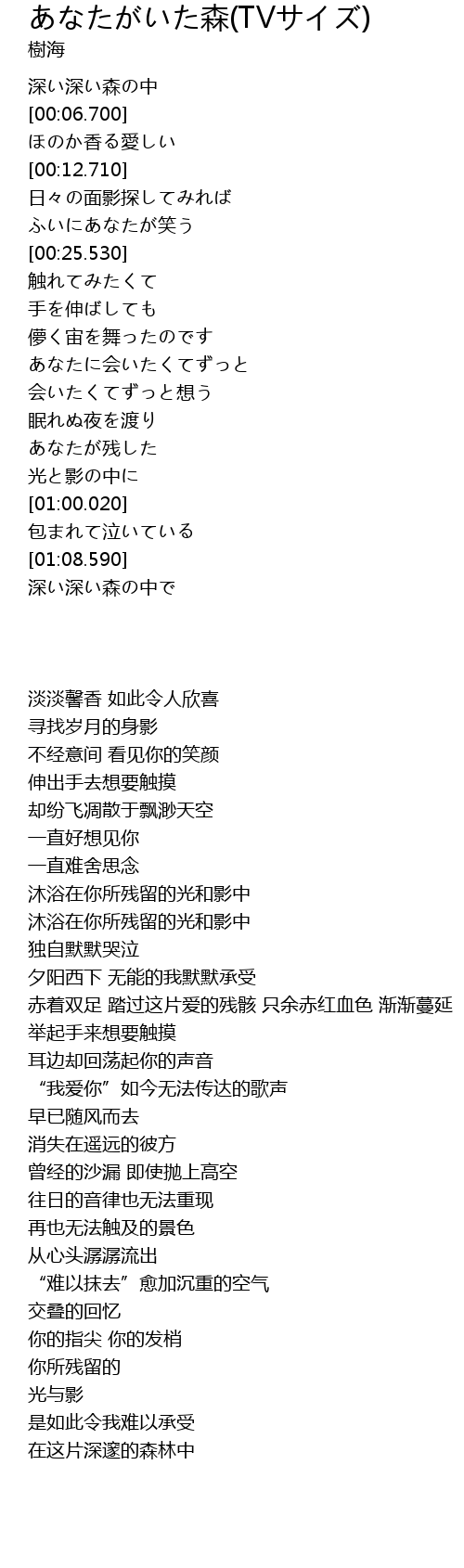 | 歌曲 | あなたがいた森(TVサイズ) |