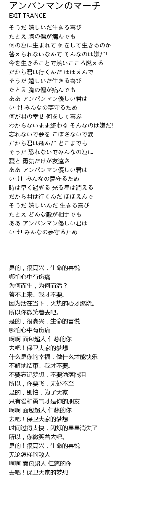 | [03:55.23] | 啊啊 面包超人 仁慈的你 |