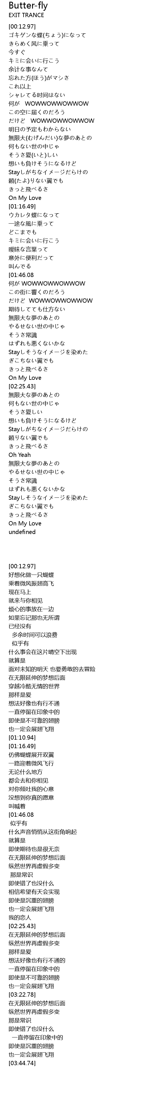 | [01:24.12] | ウカレタ蝶になって |